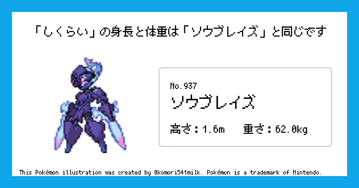 しくらいの身長と体重はソウブレイズと同じです
